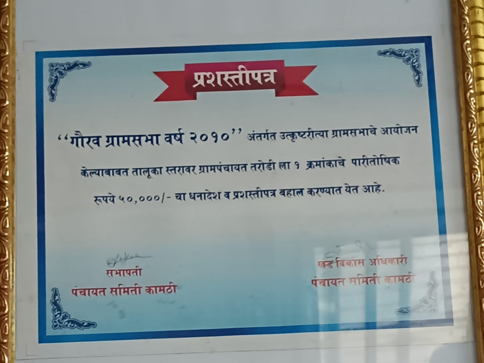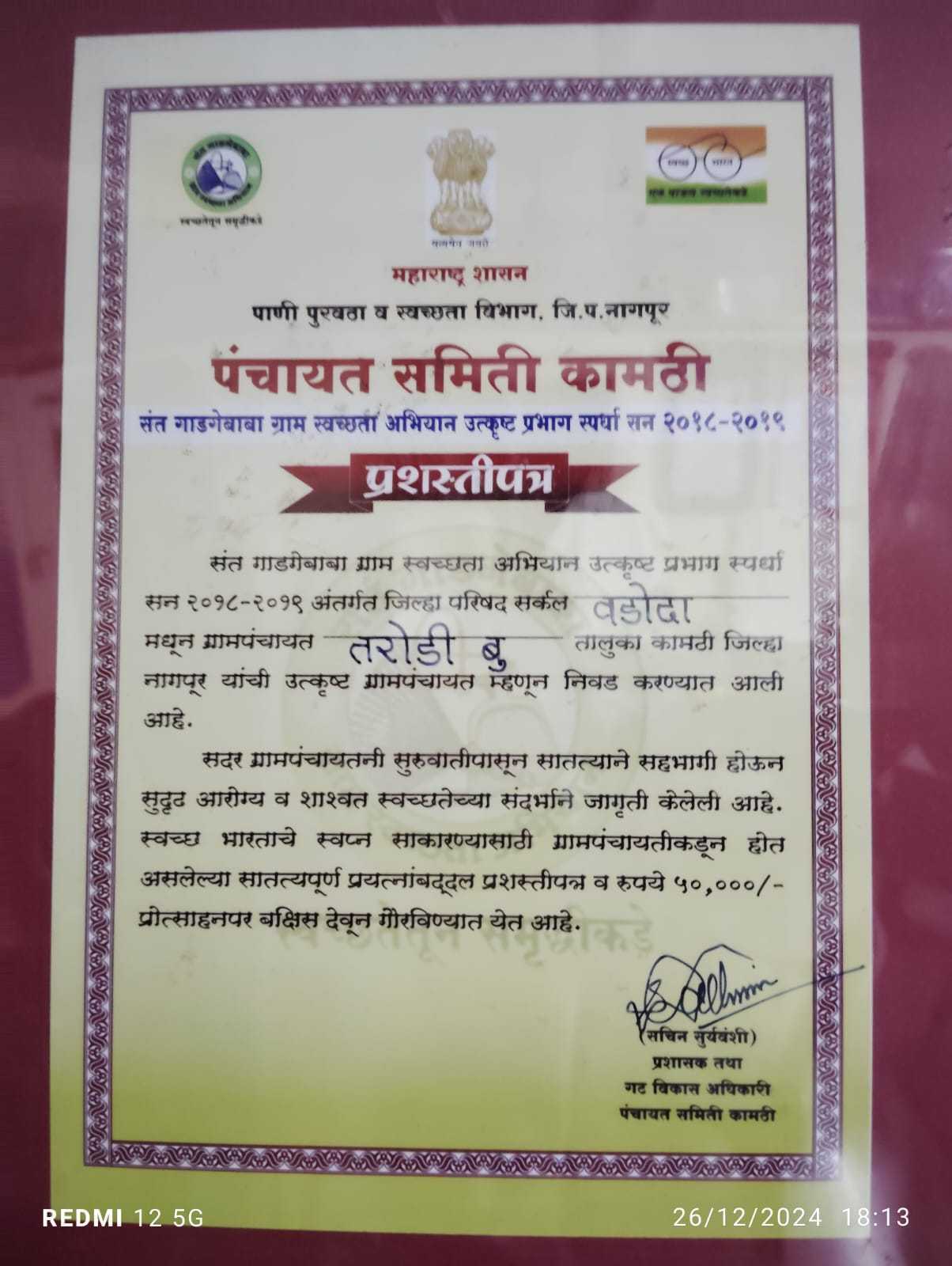 ग्राम पंचायत तरोडी (बु) गावाची लोकसंख्या १२१० असुन पुरुष ६०८ स्त्री ६०२ आहे