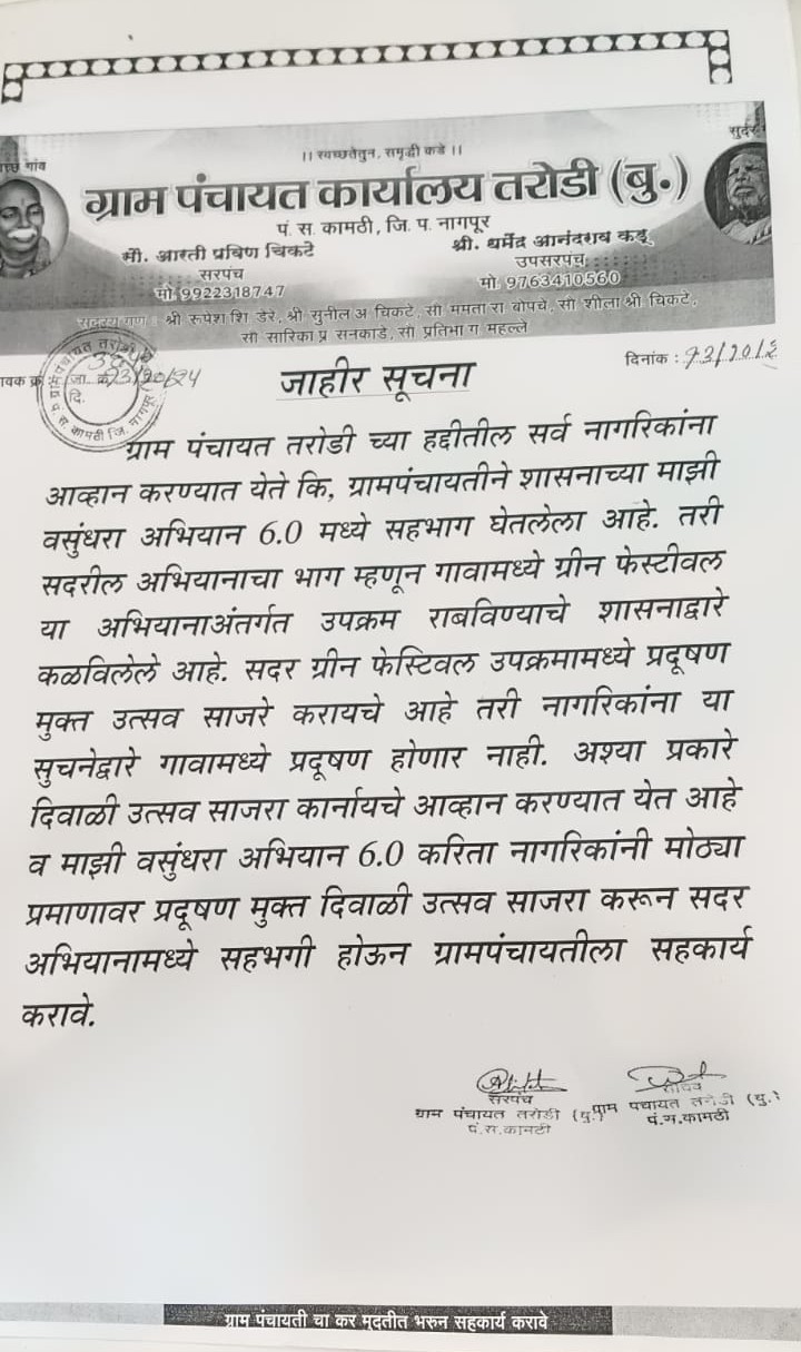 मा. महसूल मंत्री व पालकमंत्री नागपूर जिल्हा यांच्या निर्देशानुसार तरोडी बु येथे गावभेट दौरा कार्यक्रम